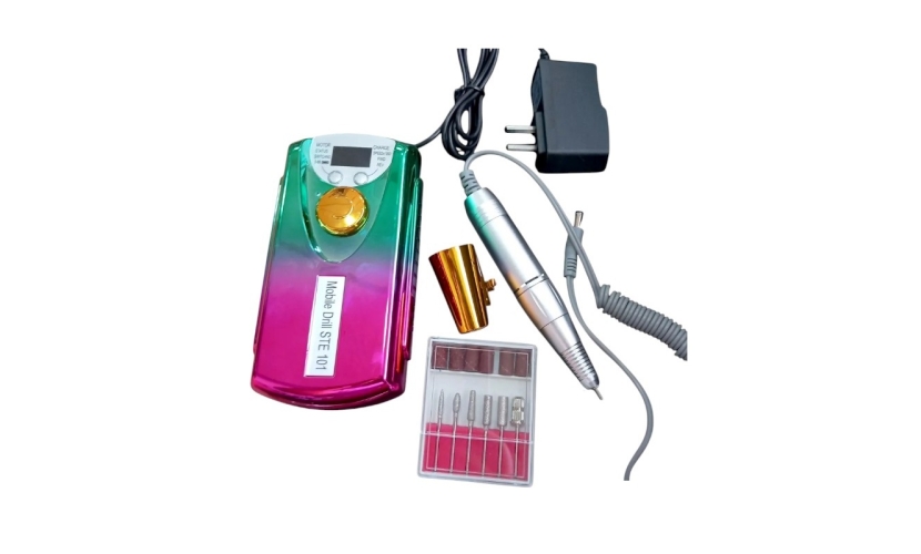 Επαγγελματικός, επαναφορτιζόμενος τροχός μανικιούρ-πεντικιούρ με βάση στήριξης. Διαθέτει ρυθμιζόμενη ταχύτητα, λειτουργία μειωμένου θορύβου και δονήσεων και εργονομικό σχεδιασμό για εύκολη και άνετη χρήση. Χαρακτηριστικά: Ισχύς: 20W Δεξιόστροφη και αριστερόστροφη λειτουργία, Ψηφιακή οθόνη ενδείξεων, Ρυθμιζόμενη ταχύτητα: 1000-30000rpm, Προστασία από υπερθέρμανση, Προστασία από αντίστροφη ενεργοποίηση (καθυστέρηση αλλαγής 2 sec), Αυτονομία μπαταρίας έως 2 ώρες, Περιλαμβάνει: 6 φρέζες και 6 τροχολιθάκια.