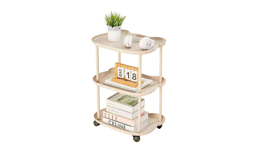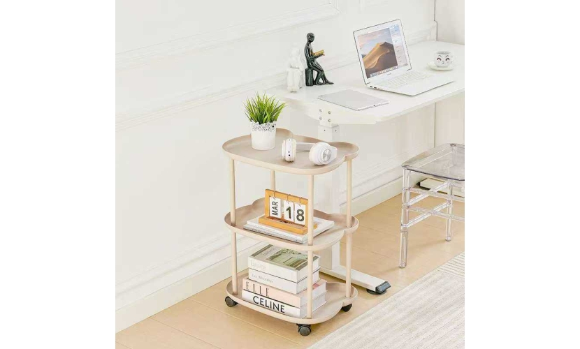 Βοηθητικό τραπεζάκι σαλονιού τριώροφο με ρόδες, σε μοντέρνο σχεδιασμό που θα προσδώσει πολυτέλεια και πρακτικότητα στο χώρο σας. Μεταλλικός σκελετός χάλυβα.