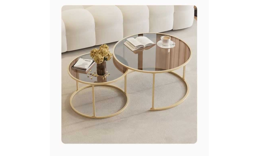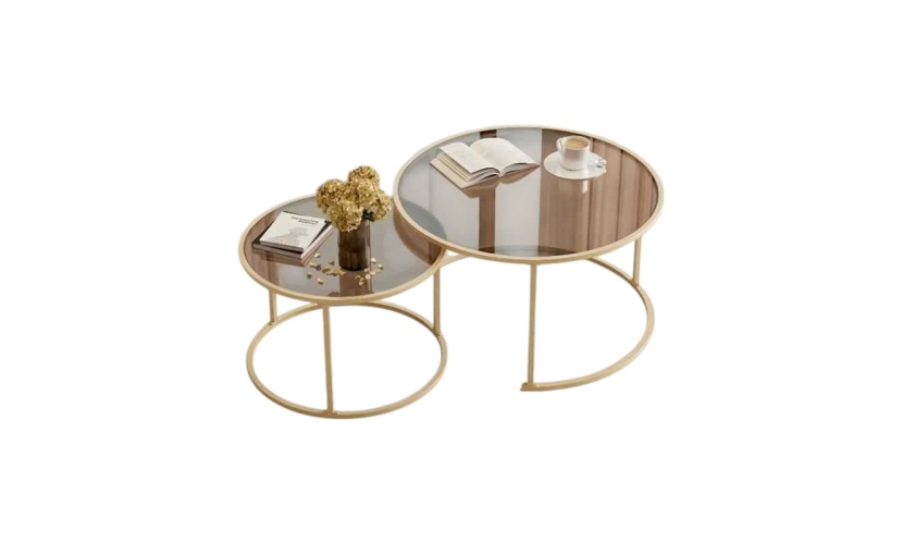 Σετ τραπεζάκια σαλονιού, γυάλινα, σε μοντέρνο σχεδιασμό που θα προσδώσει πολυτέλεια και πρακτικότητα στο χώρο σας. Υλικό: Μεταλλικός σκελετός χάλυβα και γυαλί. Διαστάσεις μεγάλου (διαμ.-ύψ.): 60 Χ 45 εκ.Διαστάσεις μικρού (διαμ.-ύψ.): 45 Χ 40 εκ.Χρώμα τζαμιού: καφέ.