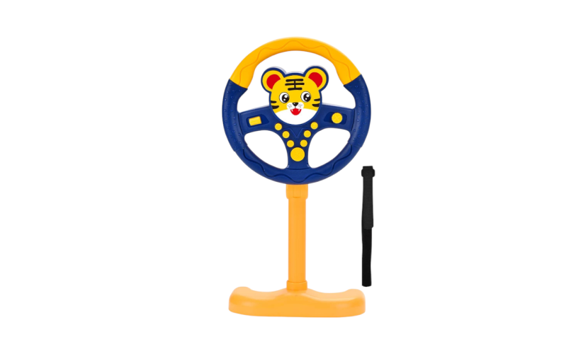 Παιδική ηλεκτρονική τιμονιέρα σε εντυπωσιακό πολύχρωμο σχεδιασμό, με ήχους, μουσική και φωτισμό. Περιστρέφεται 360° για μία ρεαλιστική εμπειρία οδήγησης. Διαθέτει πτυσσόμενο βραχίονα για ρύθμιση θέσης. Τοποθετείται με βεντούζες σε οποιαδήποτε λεία επιφάνεια ή με τον ειδικό ιμάντα στο πίσω μέρος του καθίσματος του αυτοκινήτου.