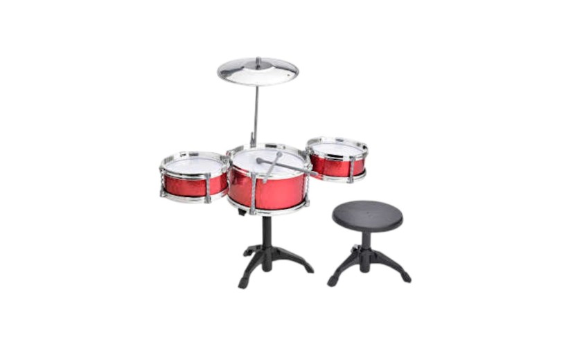 Παιδικό σετ μίνι ντραμς με κάθισμα, ιδανικό για τους μικρούς λάτρεις της μουσικής.
