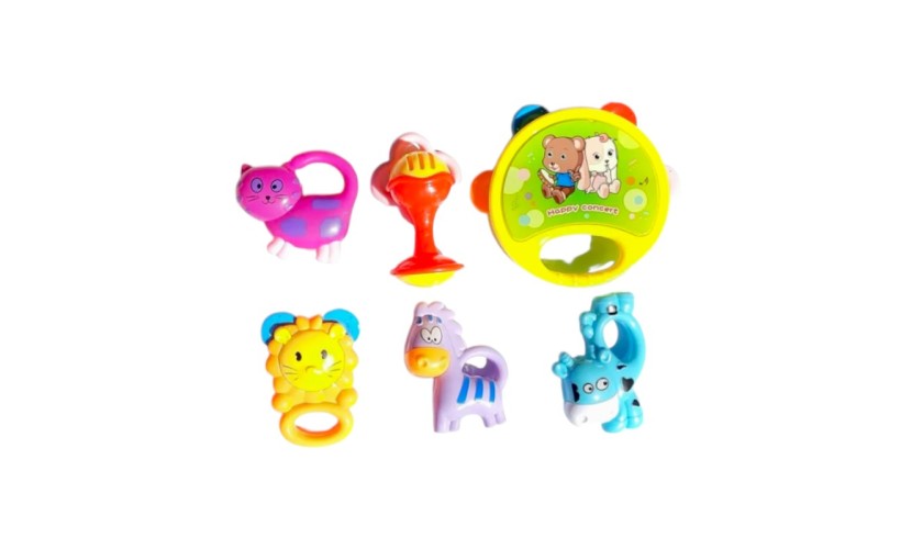 Σετ βρεφικές κουδουνίστρες και μασητικά από ασφαλή μη τοξικά υλικά, σε υπέροχα σχέδια και χρώματα, με χειρολαβές για εύκολη χρήση.
