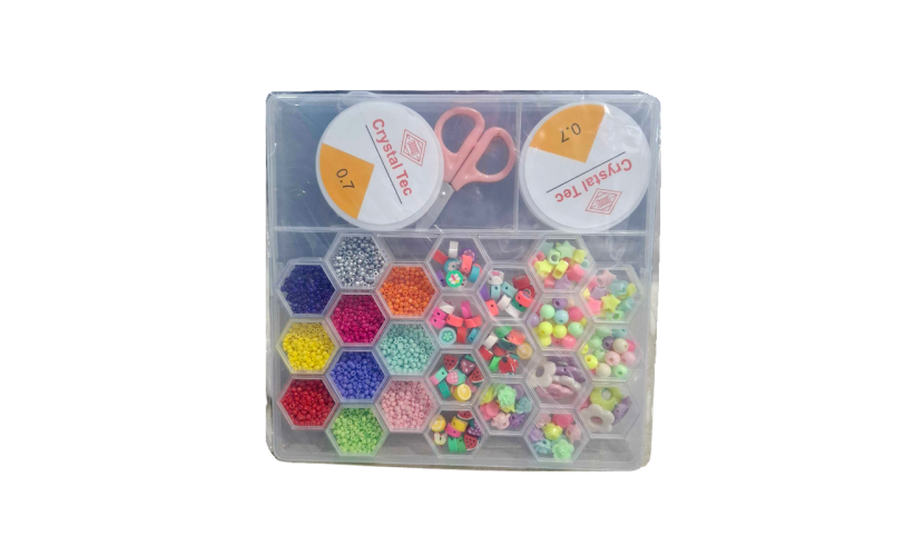 Σετ κατασκευής κοσμημάτων DIY με ποικιλία από πολύχρωμες χάντρες διαφόρων σχεδίων και όλα τα σύνεργα που θα χρειαστείς για να φτιάξεις τις δικές σου υπέροχες δημιουργίες κοσμημάτων όπως εσύ θα ήθελες! Πληροί όλα τα πρότυπα ασφαλείας. Κατάλληλο για παιδιά ηλικίας 6 ετών και άνω.