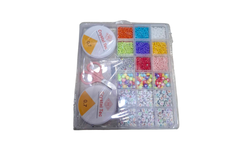 Σετ κατασκευής κοσμημάτων DIY με ποικιλία από πολύχρωμες χάντρες διαφόρων σχεδίων και όλα τα σύνεργα που θα χρειαστείς για να φτιάξεις τις δικές σου υπέροχες δημιουργίες κοσμημάτων όπως εσύ θα ήθελες! Πληροί όλα τα πρότυπα ασφαλείας. Κατάλληλο για παιδιά ηλικίας 6 ετών και άνω.