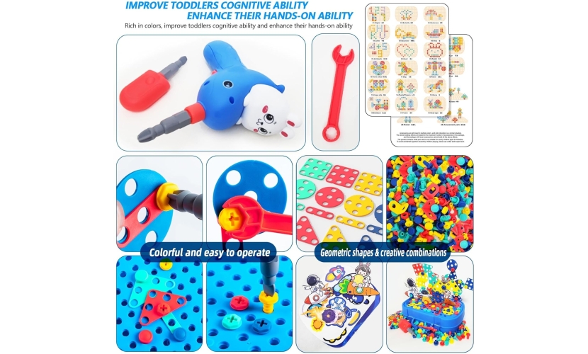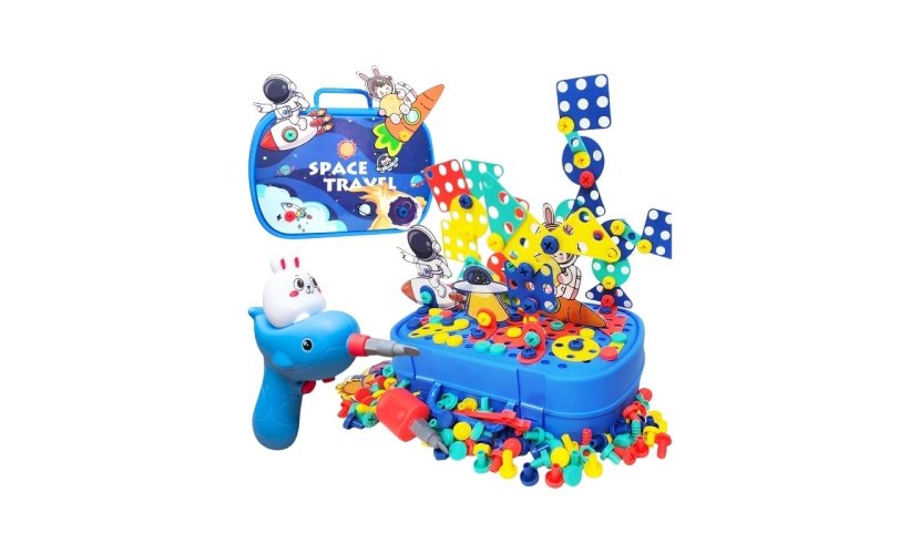 Σετ κατασκευών DIY με πολύχρωμα σχήματα, εργαλεία, βίδες και βάση κατασκευών που μετατρέπεται σε βαλιτσάκι μεταφοράς, από ασφαλή μη τοξικά υλικά.Ένα παιχνίδι ιδανικό για την εξάσκηση της λεπτής κινητικότητας και των δεξιοτήτων, για υπέροχες παιδικές δημιουργίες!Περιλαμβάνει 362 τεμάχια.