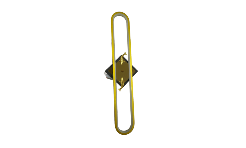 Διαθέτει 3 θερμοκρασίες φωτισμού: θερμό /ουδέτερο/ψυχρό - Κάθε φορά που σβήνετε και ανάβετε εκ νέου το φωτιστικό εμφανίζει διαφορετικό φωτισμό.Ισχύς: 20W. Μεταλλικός σκελετός. Χρυσός καθρέπτης στο ρόμβο. Διαστάσεις: 60 x 16cm.