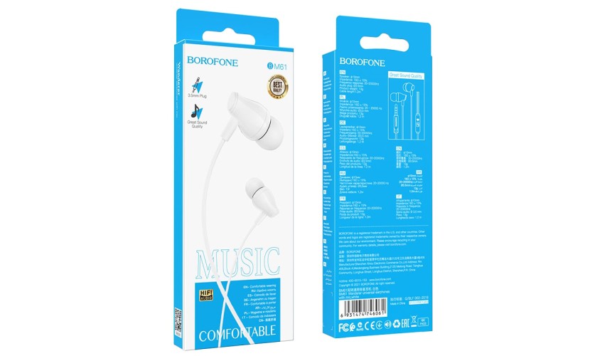 Borofone Earphones BM61 Wanderer with 3.5mm jack + microphone white