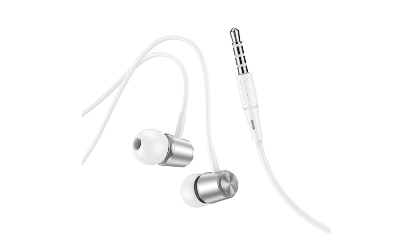 Hoco M108 wired earphones 3,5mm Jack with microphone metal white silver