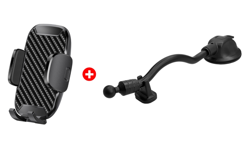 Βάση smartphone αυτοκινήτου η οποία συγκρατεί την συσκευή με πτερύγια. Τα πτερύγια είναι επενδυμένα από αντιολισθητικό, μαλακό υλικό, βελτιώνοντας την συγκράτηση της συσκευής, αποτρέποντας παράλληλα τις γρατσουνιές από την χρήση. Επιπλέον, το κάτω πτερύγιο ρυθμίζεται σε ύψος ώστε να τοποθετήσετε το smartphone σας στο ιδανικό ύψος. Η συγκράτηση της συσκευής γίνεται με άσκηση πίεσης στα πλαϊνά πτερύγια ενώ η αποδέσμευση επιτυγχάνεται με το πάτημα ενός κουμπιού στο άνω, πίσω μέρος της βάσης.Ο βραχίονας της είναι εύκαμπτος, προσφέροντας απόλυτη ελευθερία στην κίνηση του ώστε να επιτύχετε την ιδανική θέση στήριξης. Διαθέτει επιπλέον βάση στήριξης για την αποφυγή μικρομετακινήσεων και ισχυρή βεντούζα νέου τύπου η οποία προσφέρει μεγαλύτερη σταθερότητα.