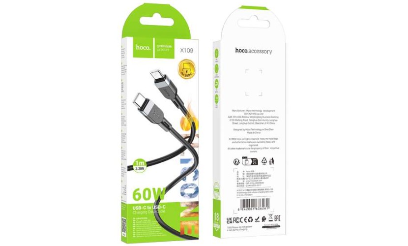 Το καλώδιο Hoco X109 USB-C σε USB-C αποτελεί μια αξιόπιστη και κομψή λύση για την καθημερινή σας φόρτιση και μεταφορά δεδομένων. Κατασκευασμένο από υψηλής ποιότητας σιλικόνη, προσφέρει εξαιρετική αντοχή στη φθορά και ευελιξία, αποτρέποντας το μπλέξιμο και διευκολύνοντας τη χρήση του σε κάθε περίσταση. Με ισχύ έως 60W, σας επιτρέπει να φορτίζετε γρήγορα και με ασφάλεια τις συμβατές συσκευές σας, όπως smartphones, tablets και laptops με θύρα USB-C.
