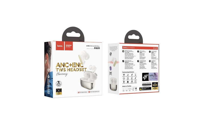 Τα Hoco TWS ANC + ENC EQ20 αποτελούν ιδανική επιλογή για όσους αναζητούν ποιοτικά ασύρματα ακουστικά με σύγχρονες λειτουργίες, κομψή εμφάνιση και αξιόπιστη απόδοση, καλύπτοντας με άνεση τόσο τις ανάγκες ψυχαγωγίας όσο και την επαγγελματική σας καθημερινότητα.