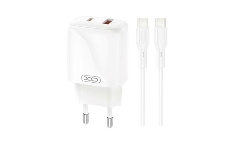 XO 220V 20W, 1*USB-A + 1*USB-C + cable USB-C to USB-C, white - L158